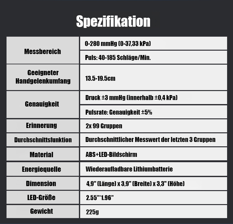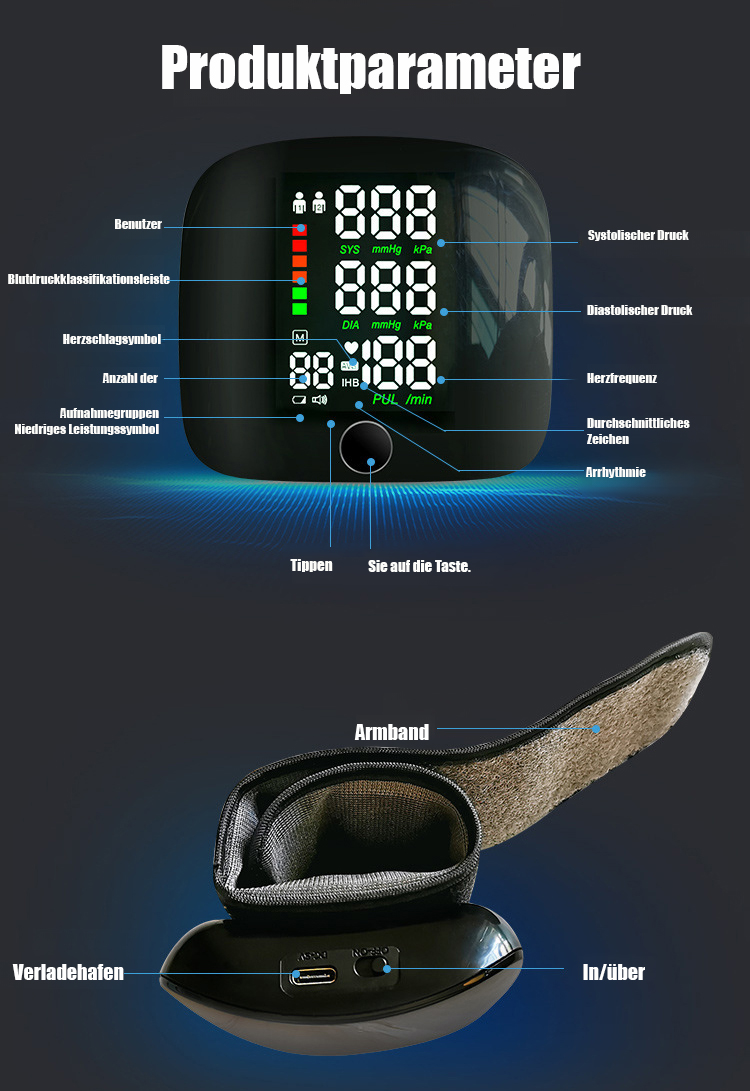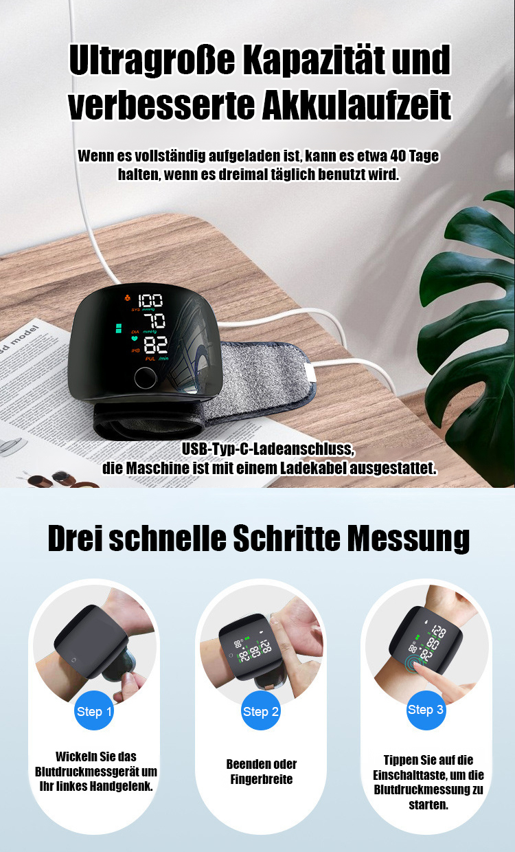 【Sprachgesteuerter Großbildschirm】Vollautomatisches Handgelenk-Blutdruckmessgerät